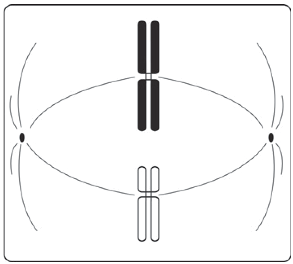 Определите тип и фазу деления изображенной на рисунке клетки, если исходная материнская клетка была гаплоидной. Ответ обоснуйте. На какой стадии жизненного цикла покрытосеменных растений может происходить такой тип деления гаплоидной клетки?