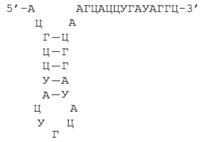 участок РНК, имеет следующую последовательность нуклеотидов (нижняя