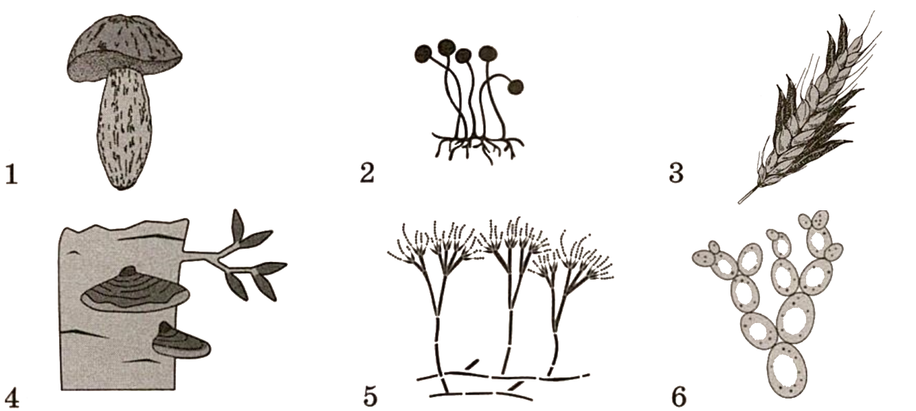 A) является паразитом Б) имеет одноклеточный многоядерный мицелий B) формирует плесень на продуктах питания Г) снижает урожайность хлебных злаков Д) формирует микоризу Е) имеет трубчатый спороносный слой |