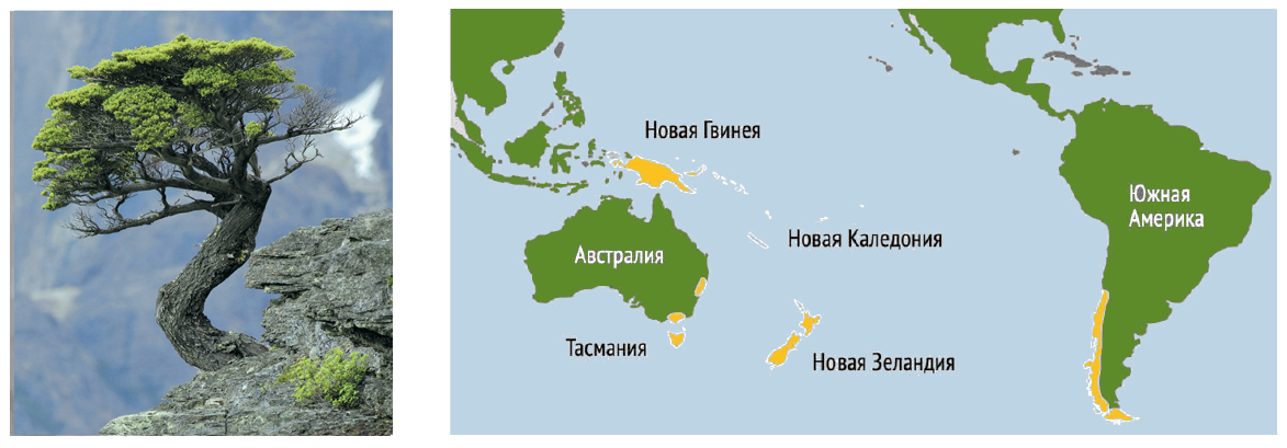 1) растение возникло на суперконтиненте (едином континенте, материке Гондвана), включающем в себя Австралию, Океанию и Южную Америку;
