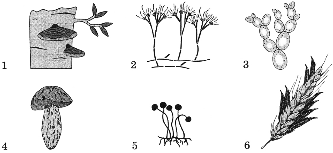 Укажите, каким номером на рисунке обозначен гриб, образующий склероции (рожки).