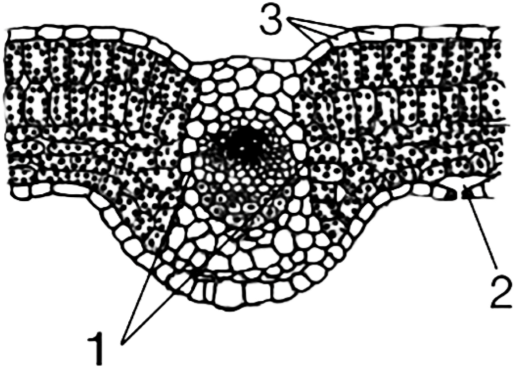 Разрез какого органа растения изображен на рисунке? Какие структуры обозначены цифрами 1, 2, 3? Какие функции они выполняют?