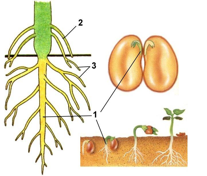 Что обозначено на рисунке «Типы корней растений» цифрами 1, 2, 3?