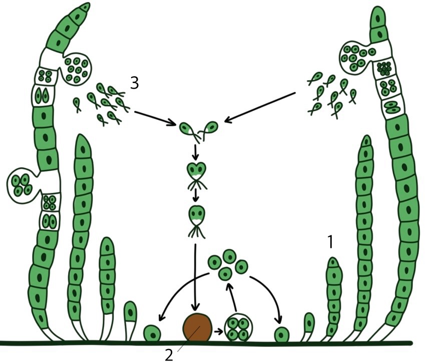 1) цифрой 1 обозначен гаметофит − взрослое растение;