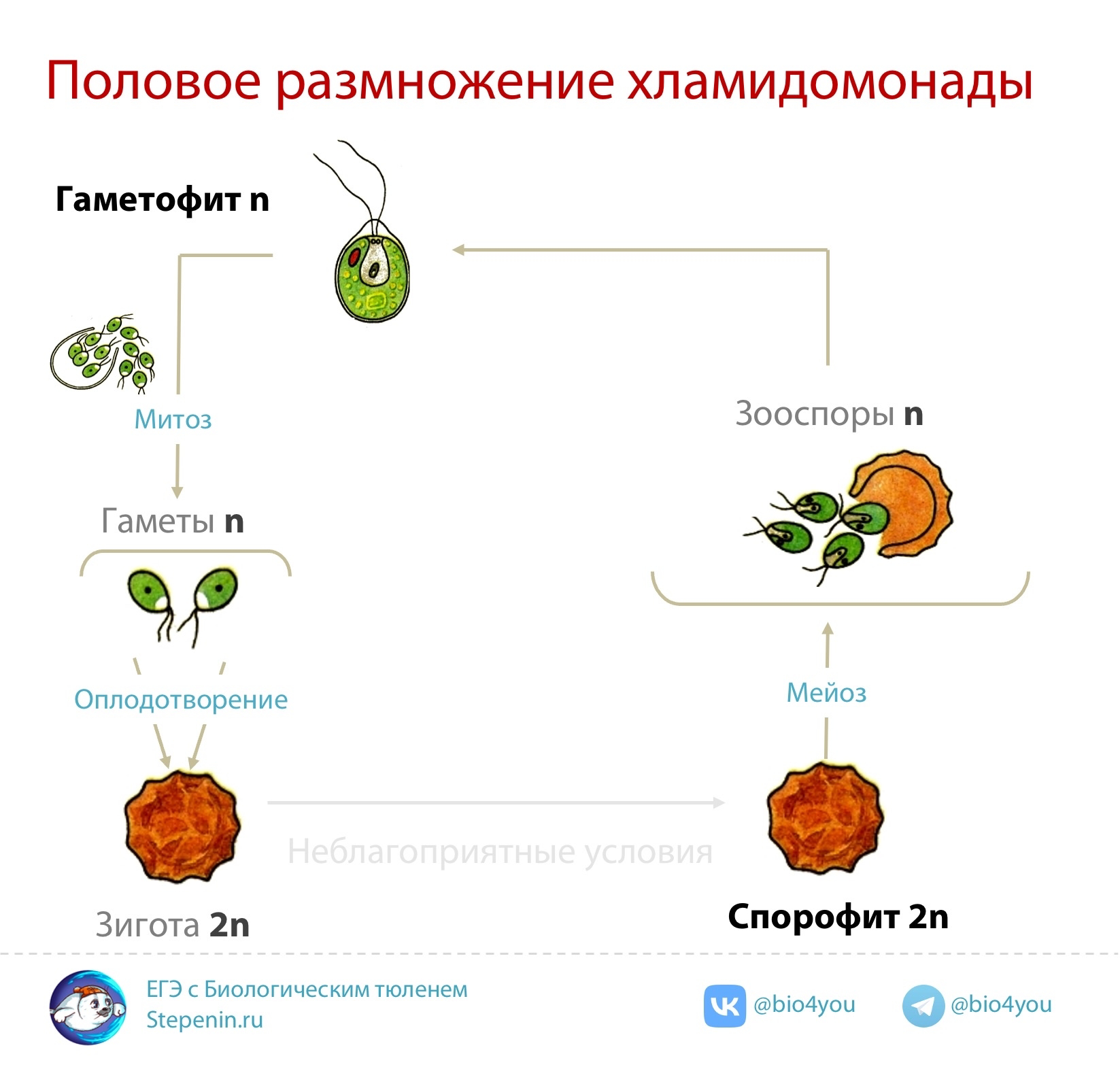 Какой хромосомный набор имеют клетки взрослой особи хламидомонады и ее гаметы? Из каких исходных клеток образуются взрослые особи и их гаметы, в результате какого деления формируются половые клетки?
