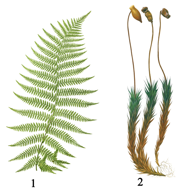 Установите соответствие между характеристиками и отделами растений, обозначенными 1 и 2.