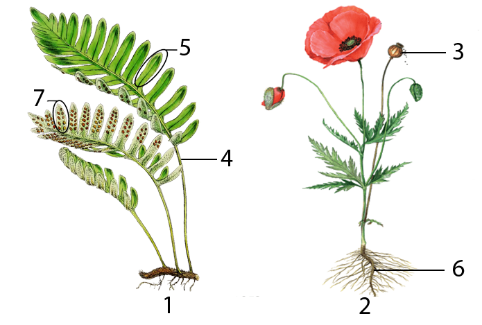 Установите соответствие между характеристиками и растениями, изображенными на рисунках 1, 2: к каждой позиции, данной в первом столбце, подберите соответствующую позицию из второго столбца.