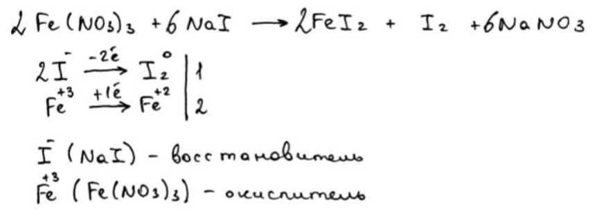 Из предложенного перечня выберите вещества, между которыми протекает окислительно-восстановительная реакция, не сопровождающаяся выделением газа. Запишите уравнение только одной из возможных окислительно-восстановительных реакций с участием выбранных веществ. Составьте электронный баланс, укажите окислитель и восстановитель.