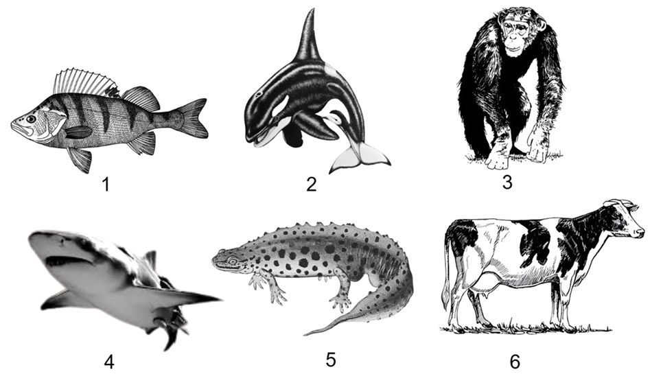 Каким номером на рисунке обозначено вторичноводное млекопитающее?