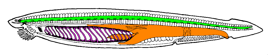 Выберите три верных ответа и запишите в таблицу цифры, под которыми они указаны. Какие признаки типа Хордовые характерны для животного, изображенного на рисунке?