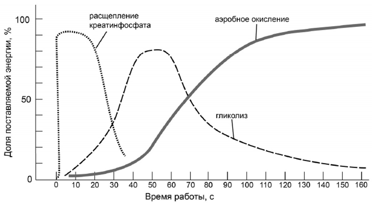 Известно, что скелетные мышцы могут использовать различные источники энергии для того, чтобы совершать сокращения. За счет каких метаболических процессов в основном будут получать энергию мышцы спринтера (спортсмена, бегущего на короткие дистанции)? Какие продукты образуются в результате этих процессов? Почему у спортсмена, выполняющего длительные нагрузки, высокая доля красных мышц? Ответ поясните.