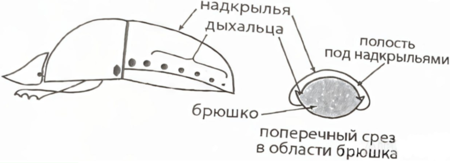 - Открытые незащищенные дыхальца приводят к потере влаги, поэтому в жарких пустынных условиях они защищены надкрыльями.