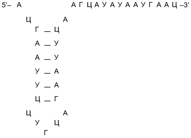 Установите нуклеотидную последовательность участка тмРНК, который синтезируется на данном фрагменте. Найдите на данном участке комплементарные участки и установите вторичную структуру участка тмРНК. Установите последовательность начала открытой рамки считывания на данном участке тмРНК. Какая последовательность полипептида кодируется данным фрагментом тмРНК? Ответ поясните. Для решения задания используйте таблицу генетического кода. При написании нуклеиновых кислот указывайте направление цепи.