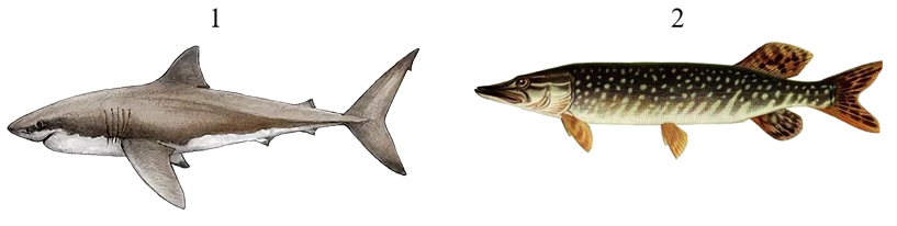 Выберите три верных ответа и запишите цифры, под которыми они указаны. По каким признакам различаются животные, изображенные на рисунках 1 и 2?