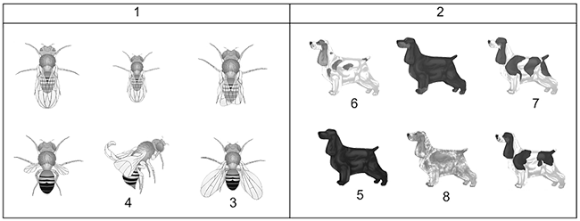 Установите соответствие между характеристиками и видами наследственной изменчивости, обозначенными цифрами на рисунке 1, 2: к каждой позиции, данной в первом столбце, подберите соответствующую позицию из второго столбца.