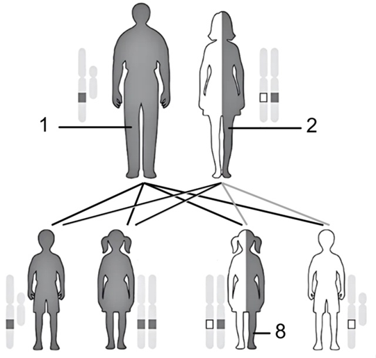Каким номером на данной картинке отмечен женский генотип ребенка–носителя?