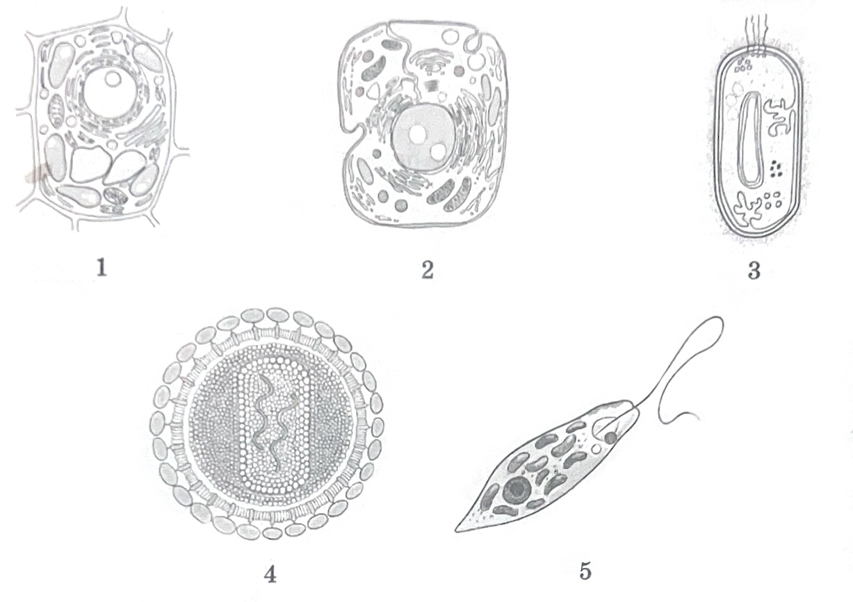 Каким номером обозначена клетка, имеющая целлюлозную клеточную стенку?