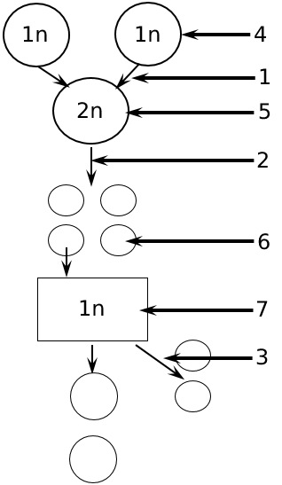 Установите соответствие между характеристиками и этапами жизненного цикла растения, обозначенными цифрами на схеме: к каждой позиции, данной в первом столбце, подберите соответствующую позицию из второго столбца.