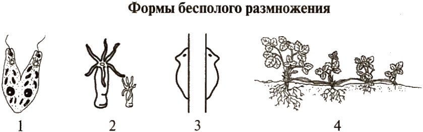 Каким номером обозначена форма бесполого размножения, при которой новый организм образуется из одной клетки родительской особи?